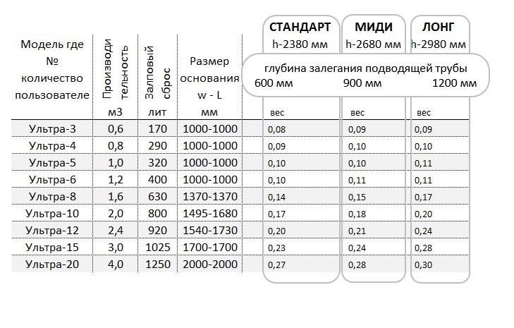 Станции с принудительным сбросом, комплектуются двумя насосами (пр-во Италия). Стандартное заглубление патрубка: - Стандарт – 60 см. - Миди – 90 см - Лонг – 120 см
